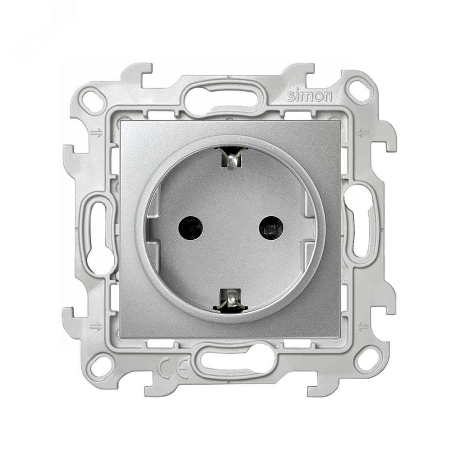 Розетка с заземлением Schuko 2Р+Е 16A 250В~ с системой Push&Go цвета алюминий S24 Harmonie