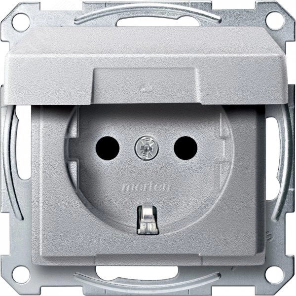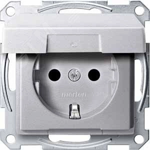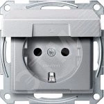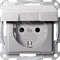 Розетка с заземлением со шторками с крышкой в рамку алюминий SCHUKO