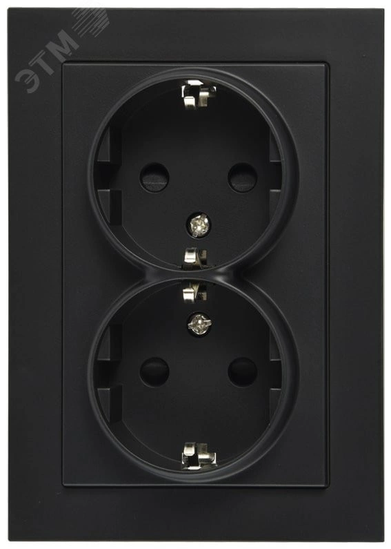 Розетка Schuko двойная с защитными шторками 16A 250V~ 2P+T, цвет черный матовый (soft touch)