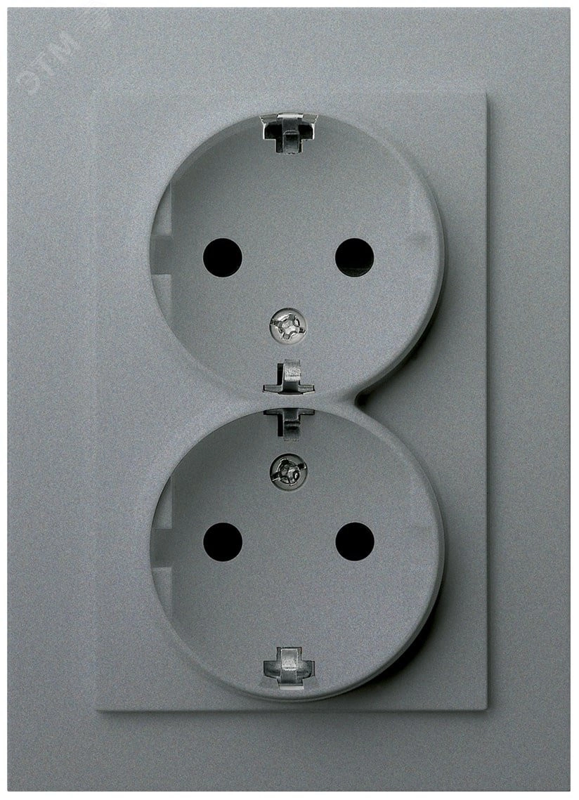 Розетка Schuko двойная с защитными шторками 16A 250V~ 2P+T, цвет Алюминий