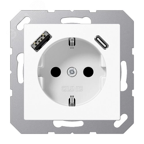 Розетка SCHUKO с USB-зарядным устройством, тип A +тип С, термопласт, белый