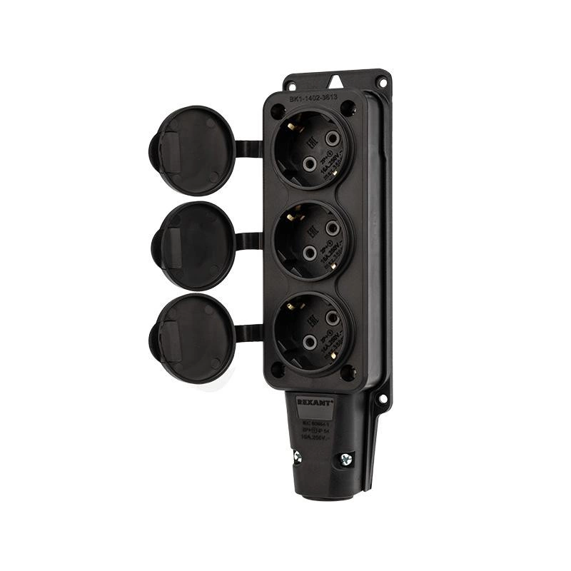 Розетка штепсельная трехместная влагозащ. с/з 16А IP54 каучук Rexant 111-113