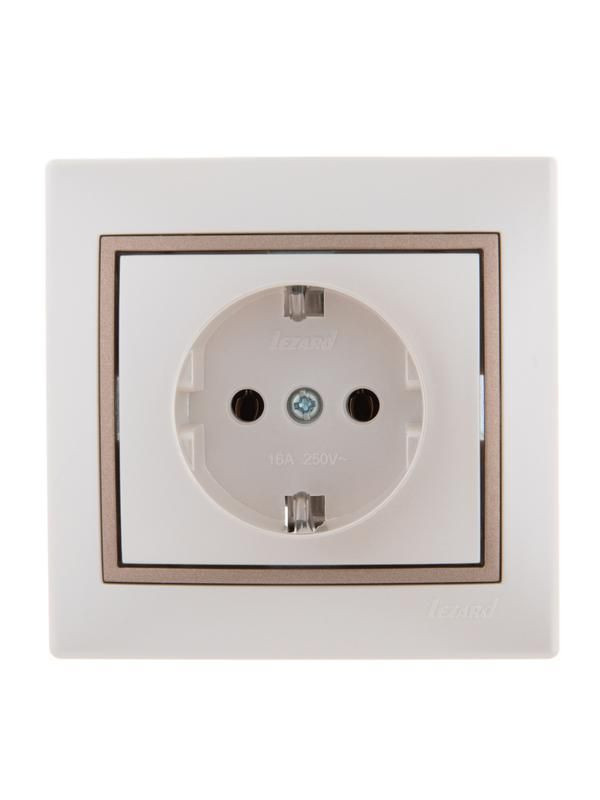 Полное описание: Розетка СП Mira 16А IP20 с заземл. со вставкой керамика свет. корич./жемчуж./бел. перламутр. LEZARD 701-3031-122