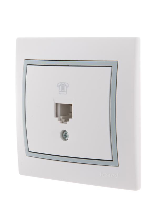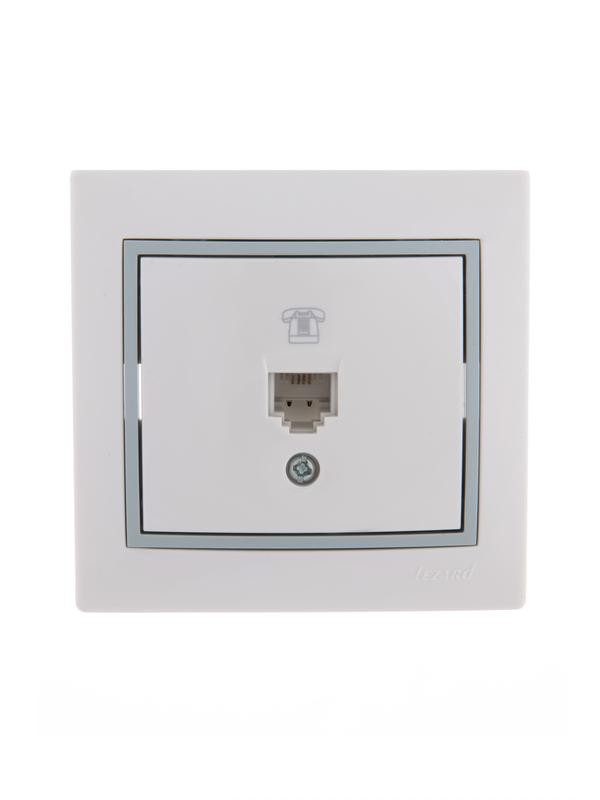 Полное описание: Розетка телефонная 1-м СП Mira RJ11 бел./сер. LEZARD 701-0215-137