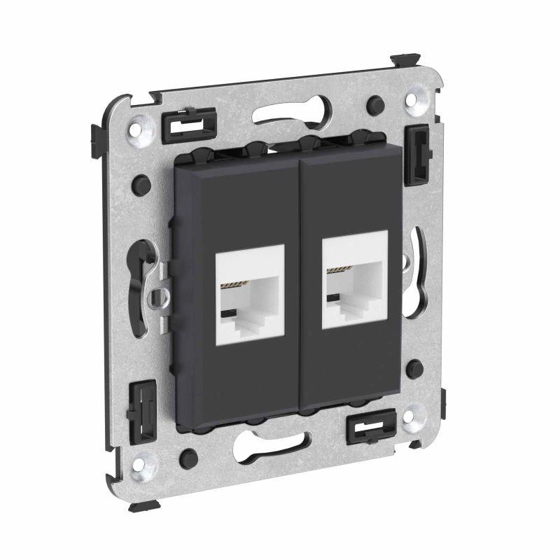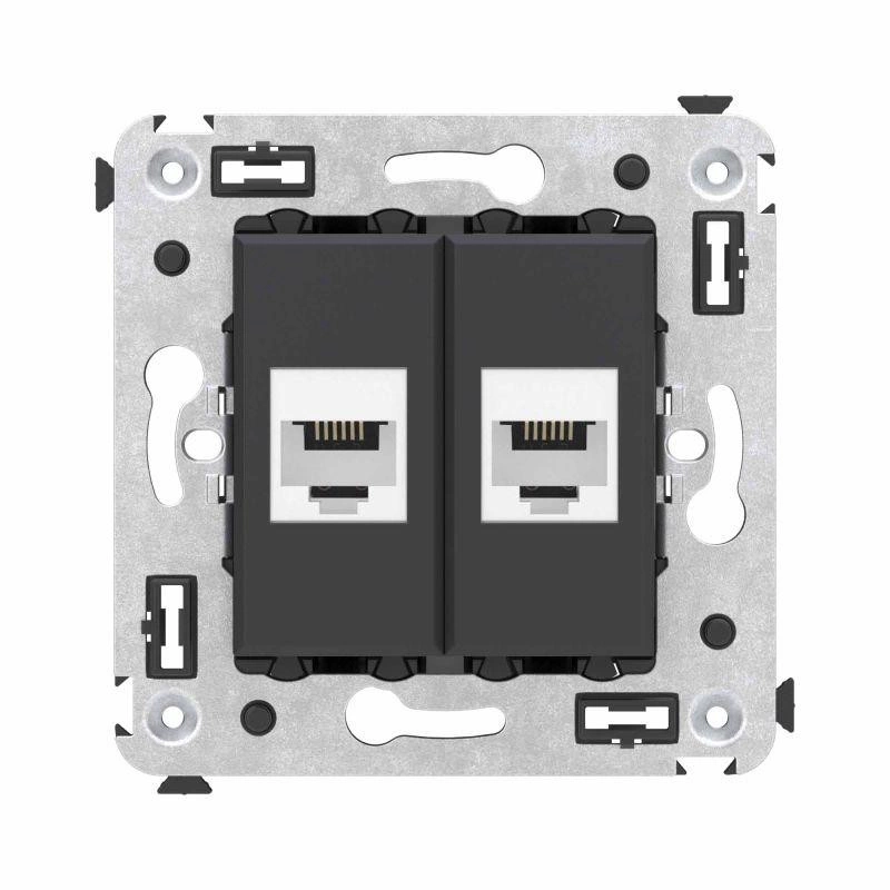 Розетка телефонная 2-м СП Avanti "Черный матовый" RJ12 без шторок механизм DKC 4412614