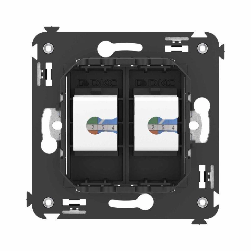 Полное описание: Розетка телефонная 2-м СП Avanti "Черный матовый" RJ12 без шторок механизм DKC 4412614