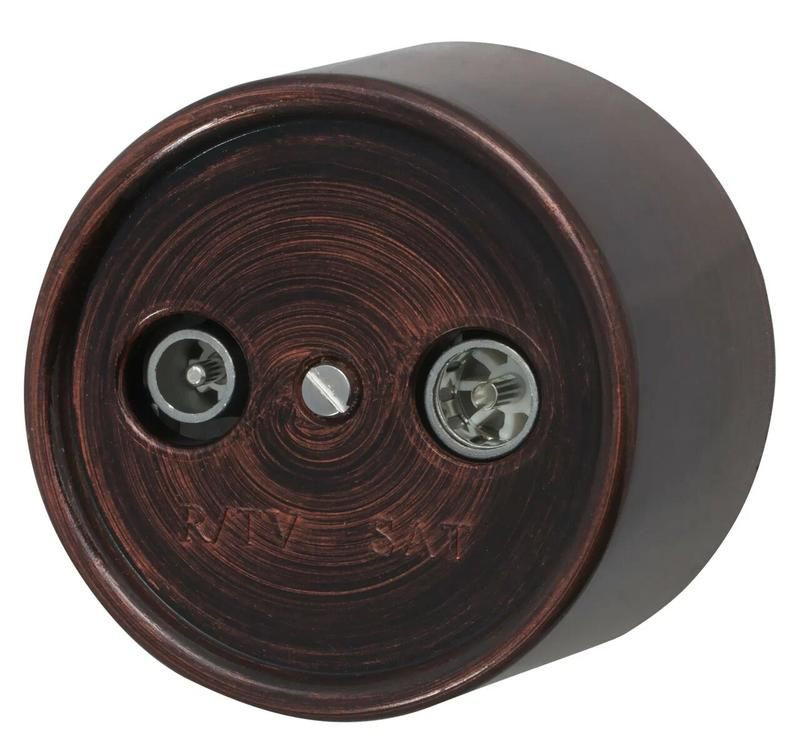 Розетка телевизионная оконечная TV/R/SAT 1-м ОП Лизетта 10А IP20 ретро ABS-пластик медн. век Bironi B1-305-16