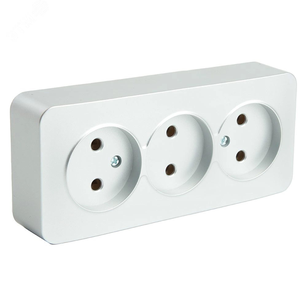 Розетка трехместная б/з 250В 10А серия София серебро STEKKER