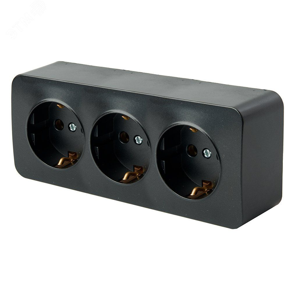 Розетка трехместная с/з 250В 10А серия София черный STEKKER