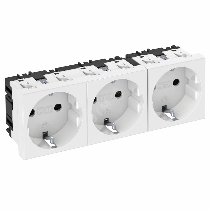 Розетка с заземляющим контактом тройная 0, с повышенной защитой прикосновений, со штекерными зажимами, 2-полюсная 16 A, 250 V~, с соединительными клеммами согласно IEC 60884-1.