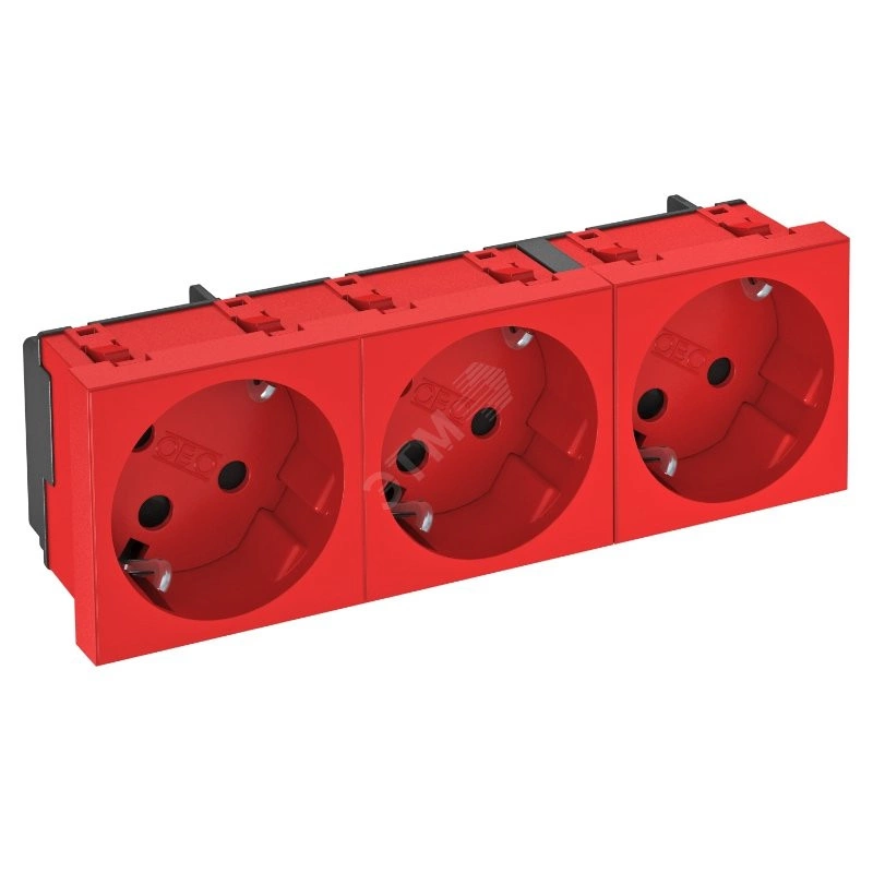 Розетка с заземляющим контактом тройная 33, с повышенной защитой от прикосновений, со штекерными зажимами, 2-полюсная, с возможностью кодировки 16 A, 250 V~, с соединительными клеммами согласно IEC 60884-1. Данная розетка может использоваться только в сочетании с кодировочным ключем типа CST-STD.