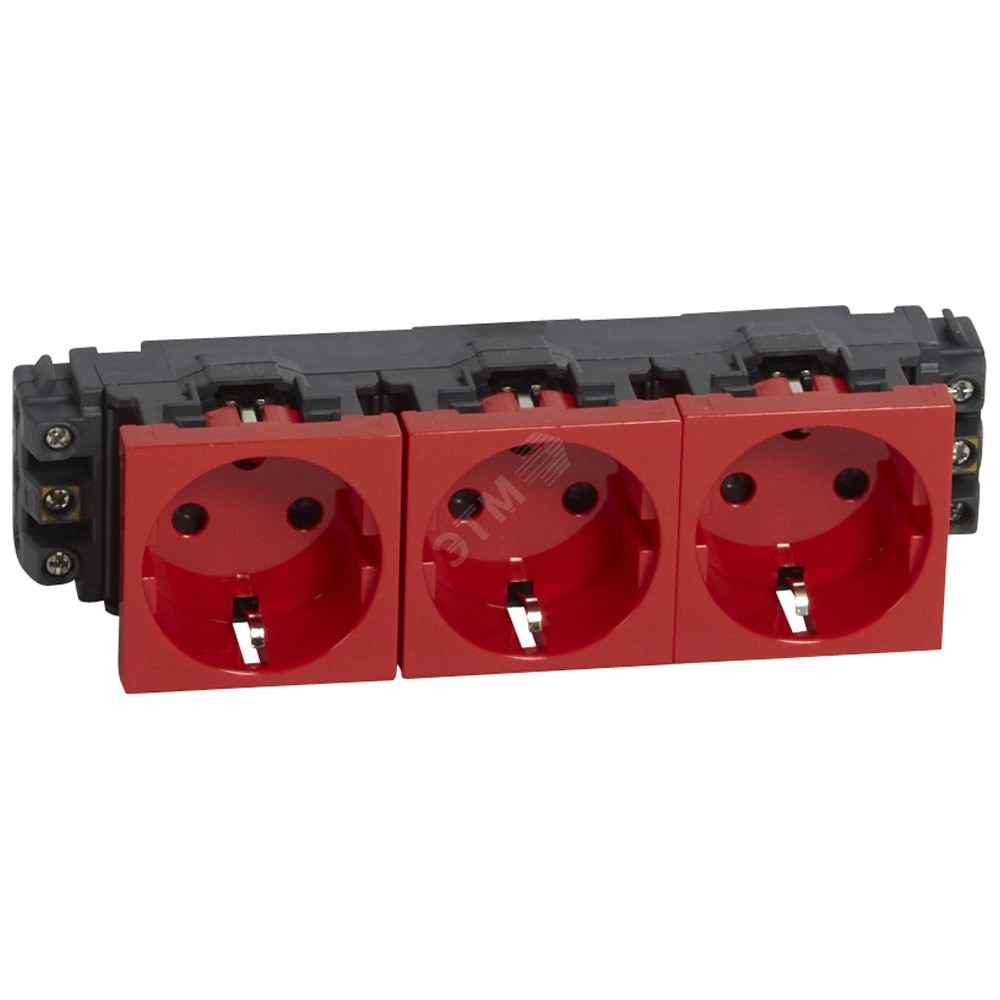 Розетка тройная Mosaic-New с заземлением с блокировкой красная, ключ 50299