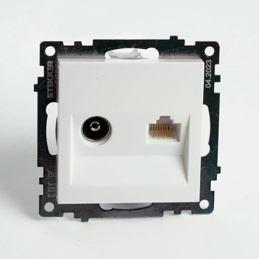 Розетка STEKKER GLS00-7106-01 на 2 поста. Материал: ABS пластик, латунь, цвет белый, размер 55*55*35мм. диапазон рабочих температур 0..+35°C, IP20 . Представляет собой комбинированную розетку RJ45+ TV. Позволяет сэкономить место в рамке. Серия Катрин ''ТМ Stekker'' лаконичное и стильное решение для любого интерьера. Широкая цветовая гамма механизмов и стеклянных рамок позволяет реализовывать стильные решения и создавать уникальные акценты. Комбинации рамок и механизмов можно подобрать таким образом, чтобы создать уникальный ансамбль с освещением.