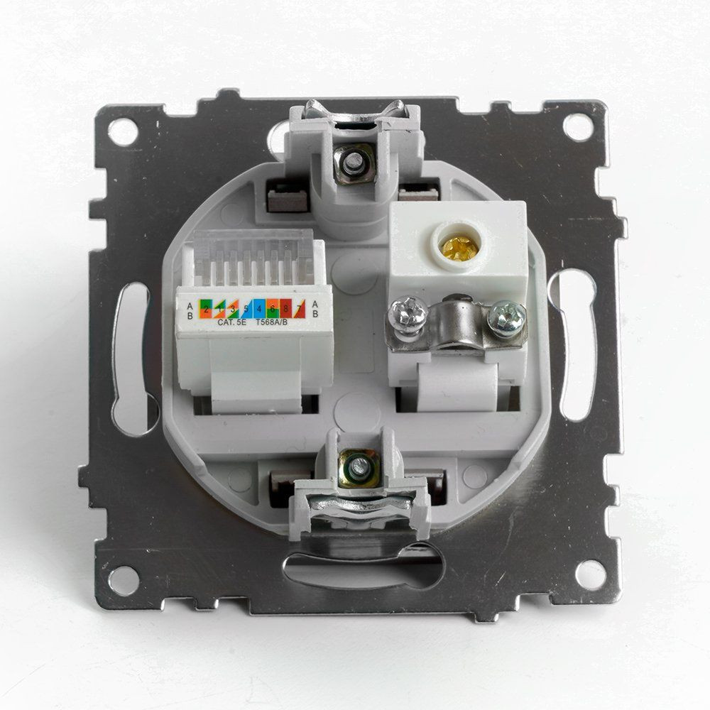 Розетка TV + компьютерная RJ-45 (механизм) серия Катрин шоколад STEKKER