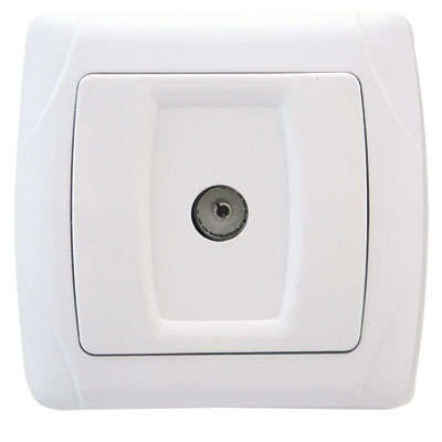 Розетка TV 1-м СП Маргарита бел. UNIVersal М0027 серии "Маргарита" для скрытой установки сочетает в себе гармонию форм с изяществом дизайна. Изделия данной серии удачно вписываются в интерьер любого помещения и производят приятное впечатление.