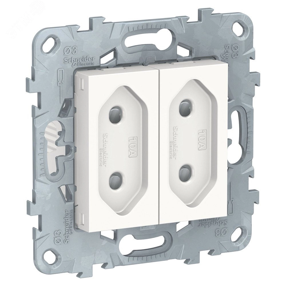 Розетка UNICA NEW двухмодульная без заземления со шторками винтовой зажим 10 А белый