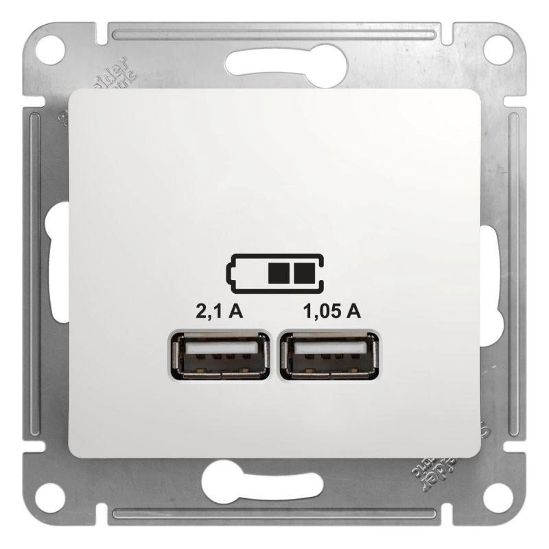 Полное описание: Розетка USB 2-м СП Glossa A+A 5В/2.1А 2х5В/1.05А механизм бел. SchE GSL000133