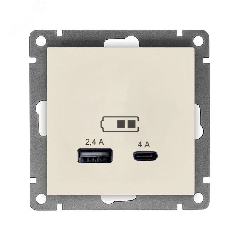 Розетка USB Афина A+С 2.4/4А, механизм с/у, слоновая кость (ivory) (еврослот)
