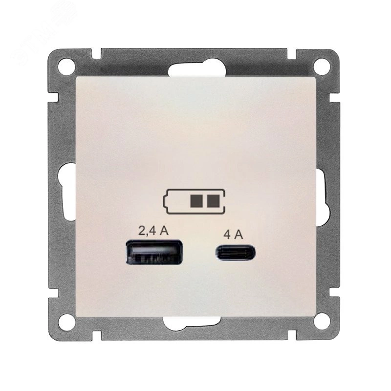Полное описание: Розетка USB Афина A+С 2.4/4А, механизм с/у, жемчуг (еврослот)