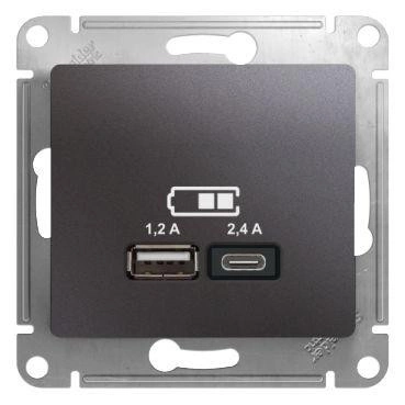 Полное описание: Розетка USB Glossa тип A+C 5В/2.4А 2х5В/1.2А механизм графит SE GSL001339