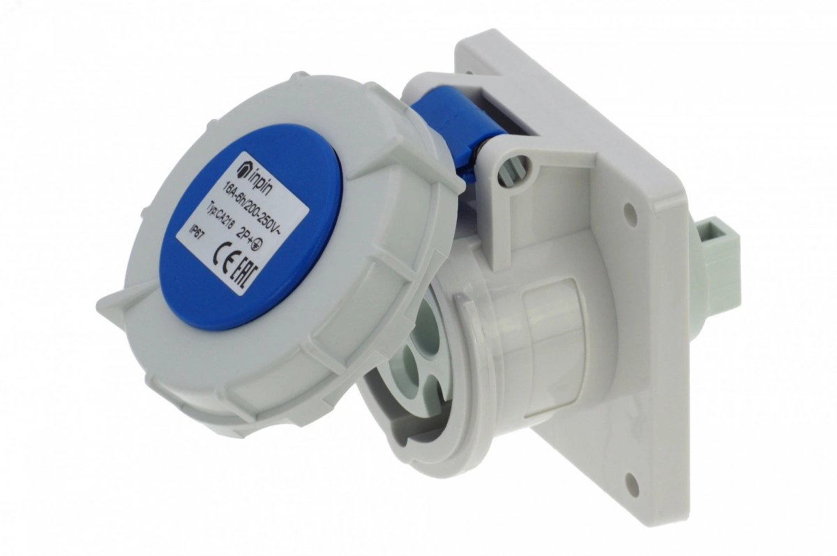 Розетка встраиваемая 16A/230V/1P+N+E/IP67, фланец 75x75, имеет винтовые контакты, выполнены из латуни. Корпус выполнен из полиамида