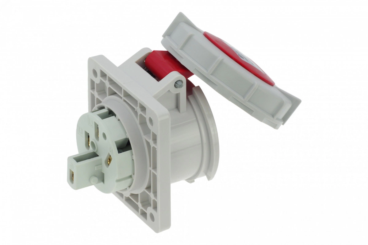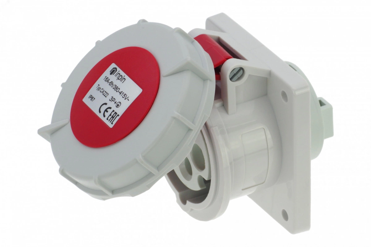 Розетка встраиваемая 16A/400V/3P+E/IP67, фланец 75x75, имеет винтовые контакты, выполнены из латуни. Корпус выполнен из полиамида