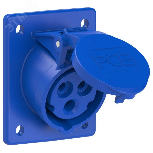 Розетка встраиваемая наклонная 16А/230V/1P+N+E/IP44, фланец 70x85, материал - полиамид, винтовые клеммы, цвет изделия синий