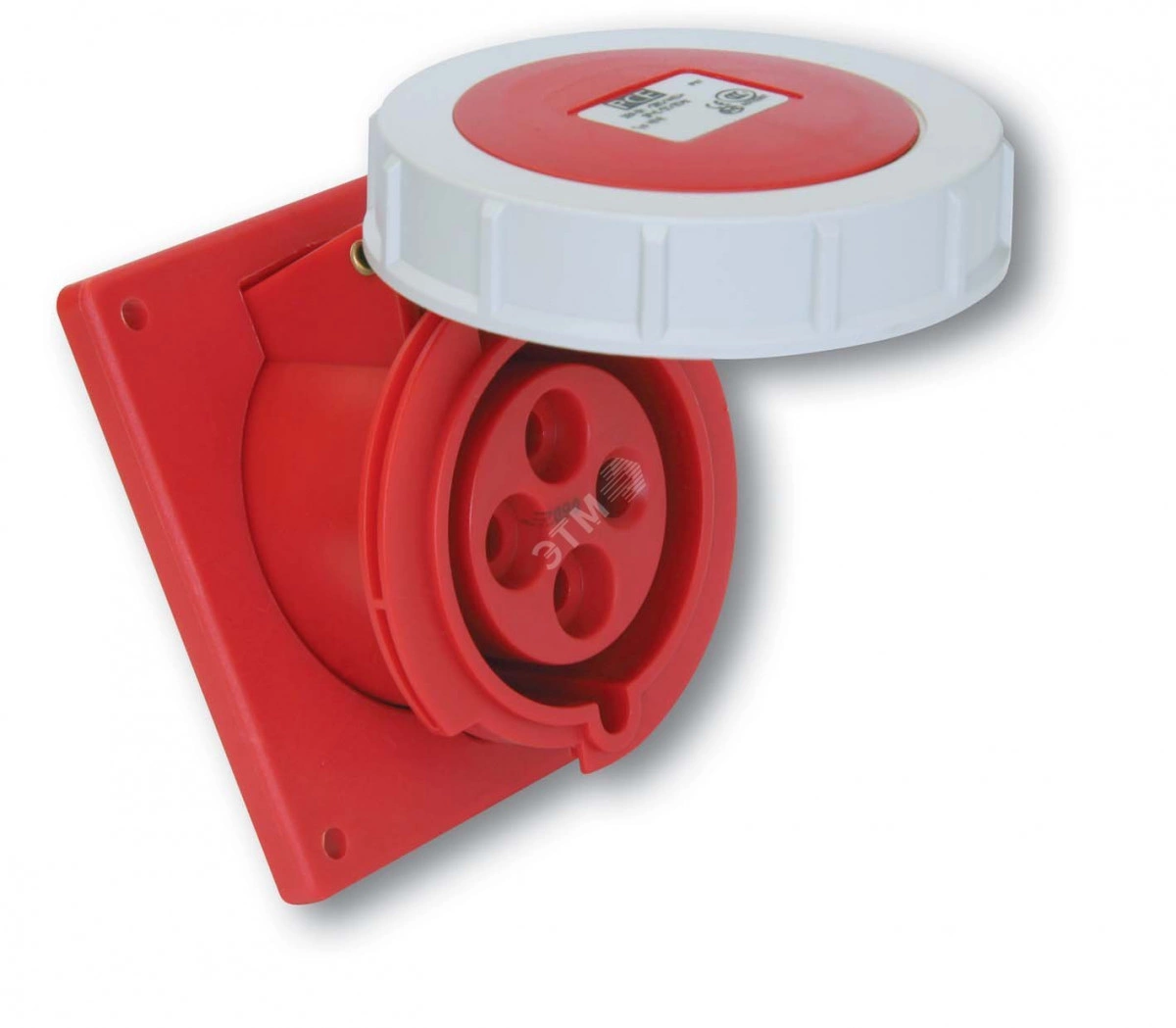 Розетка встраиваемая, наклонная, контейнерная 32A/440V/3P+E/IP67/3h, никелированные контакты, материал - полиамид, винтовые клеммы, цвет изделия красный