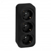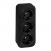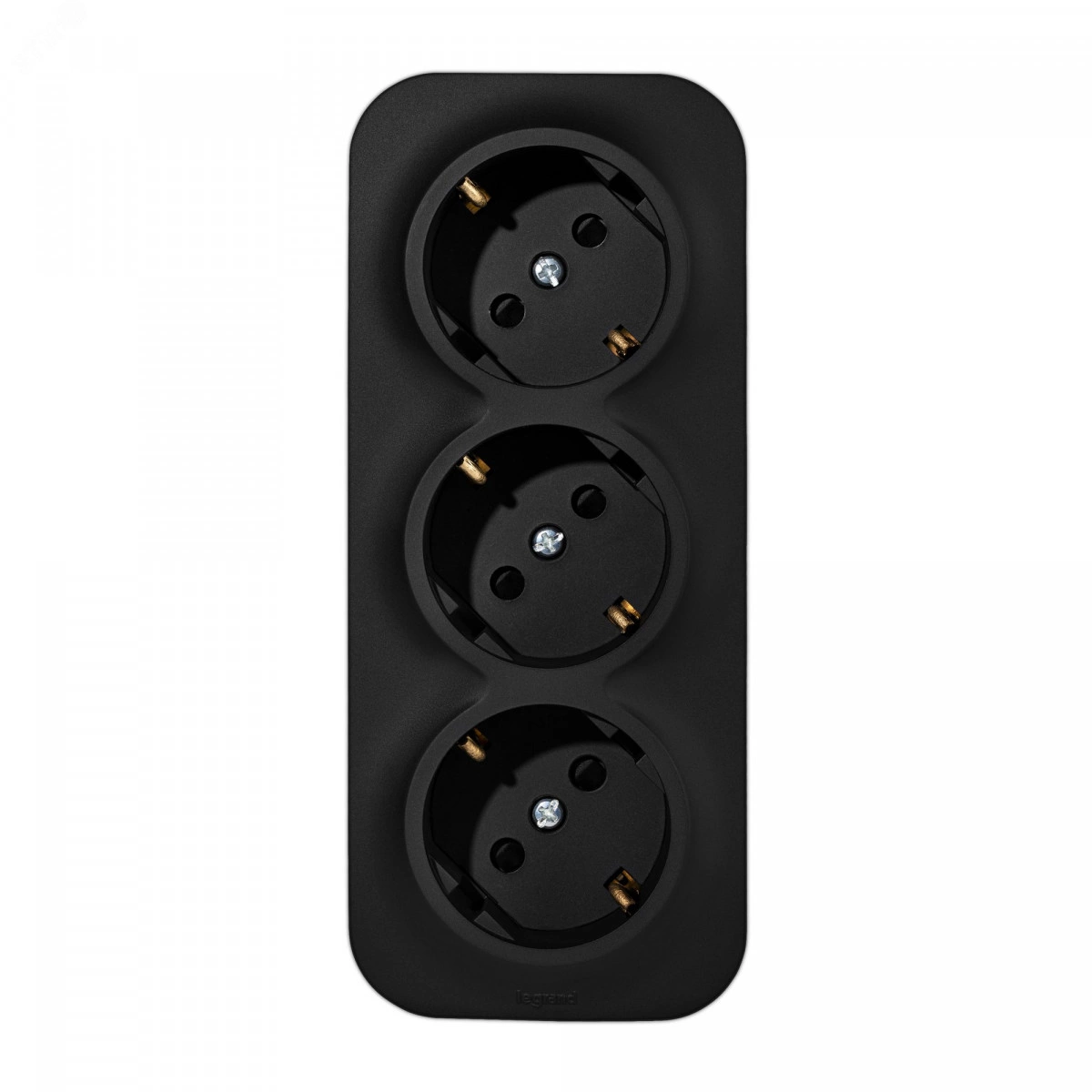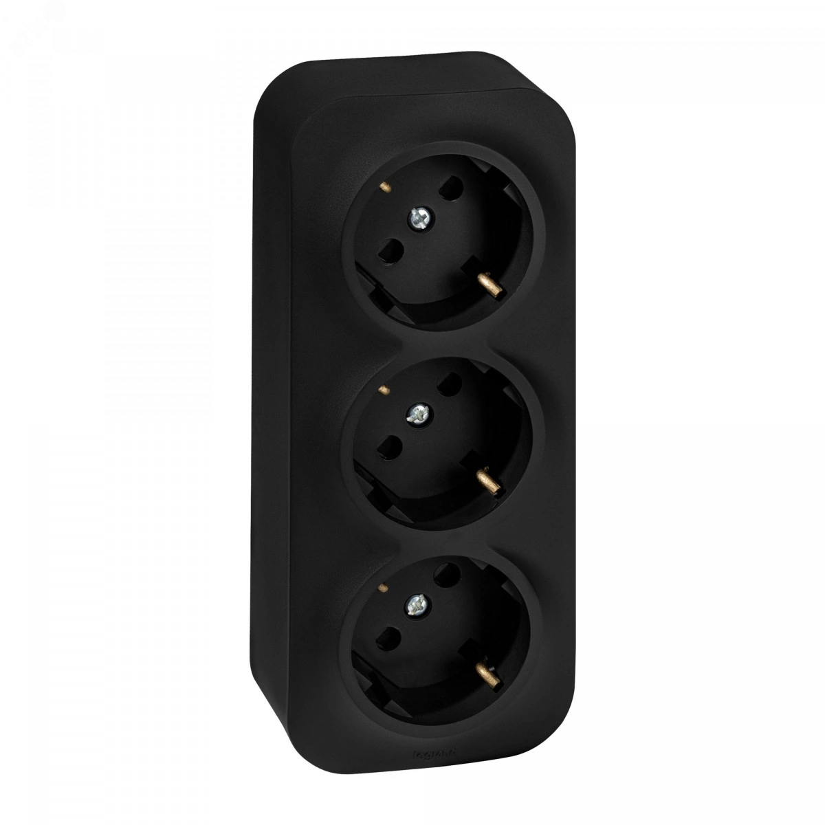 Розетка трёхместная с заземлением с защитными шторками открытого монтажа серии Quteo. Применяется для электропитания в зданиях с проводкой с заземлением. Подходит как для скрытой, так и для открытой проводки. Защитные шторки ограничивают доступ к токоведущим контактам, который открывается только при подключении вилки. Глубокий матовый чёрный цвет. Cтойкий к износу и повреждениям, тактильно приятный. Все розетки в блоке соединены между собой токоведущими шинами, что обеспечивает быстрый монтаж. Гнёзда розеток расположены под углом 45 градусов - удобное подключение вилок различного типа. Контактная группа сохраняет плотный контакт с вилкой при длительной эксплуатации. Зажимы для присоединения проводников винтовые, с невыпадающими винтами. Все токоведущие части розетки имеют защиту от случайного прикосновения. Механизм и корпус изготовлены из поликарбоната - обладает высокой электробезопасностью, не поддерживает горение. Идеальная совместимость с кабельными мини-каналами Metra.
