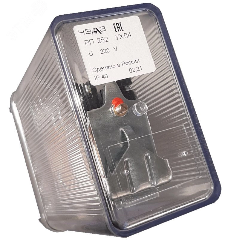 Реле промежуточное с выдержкой времени РП252 серии РП 250 изготавливается по ТУ16-523.483-78 и предназначено для применения в качестве вспомогательного реле в цепях постоянного тока (РП 251, РП 252, РП 253, РП 254, РП 255) когда требуется выдержка времени при отпускании (реле типа РП 252 и типа РП 256) Реле РП251, РП252 и РП256 имеют по одной обмотке напряжения (рабочей). Реле РП253 и РП255 имеют по одной обмотке напряжения (рабочей) и по три токовых (удерживающих). Кроме того, в реле РП253 имеется еще демпферная обмотка. Степень защиты оболочки реле промежуточное РП252 - IP40, а контактных зажимов для присоединения внешних проводников - IP00 по ГОСТ 14255-69. Все элементы схемы реле промежуточное РП252 арт. 272520047 01 смонтированы внутри корпуса, состоящего из основания (цоколя) и съемного прозрачного кожуха.