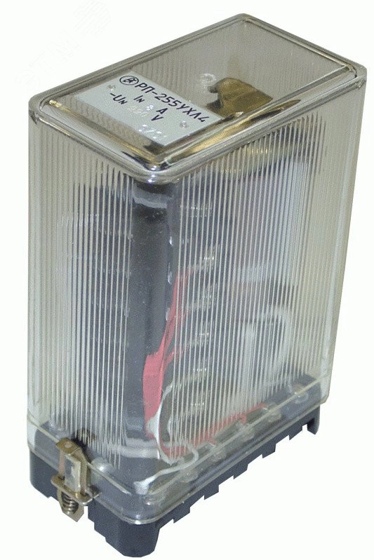 Реле промежуточное с выдержкой времени РП255 серии РП 250 изготавливается по ТУ16-523.483-78 и предназначено для применения в качестве вспомогательного реле в цепях постоянного тока (РП 251, РП 252, РП 253, РП 254, РП 255) когда требуется действие реле от напряжения и удерживание от тока (реле типов РП253 и РП255) Реле РП251, РП252 и РП256 имеют по одной обмотке напряжения (рабочей). Реле РП253 и РП255 имеют по одной обмотке напряжения (рабочей) и по три токовых (удерживающих). Кроме того, в реле РП253 имеется еще демпферная обмотка. Степень защиты оболочки реле промежуточное РП255 - IP40, а контактных зажимов для присоединения внешних проводников - IP00 по ГОСТ 14255-69. Все элементы схемы реле промежуточное РП255 арт. 272550187 01 смонтированы внутри корпуса, состоящего из основания (цоколя) и съемного прозрачного кожуха.