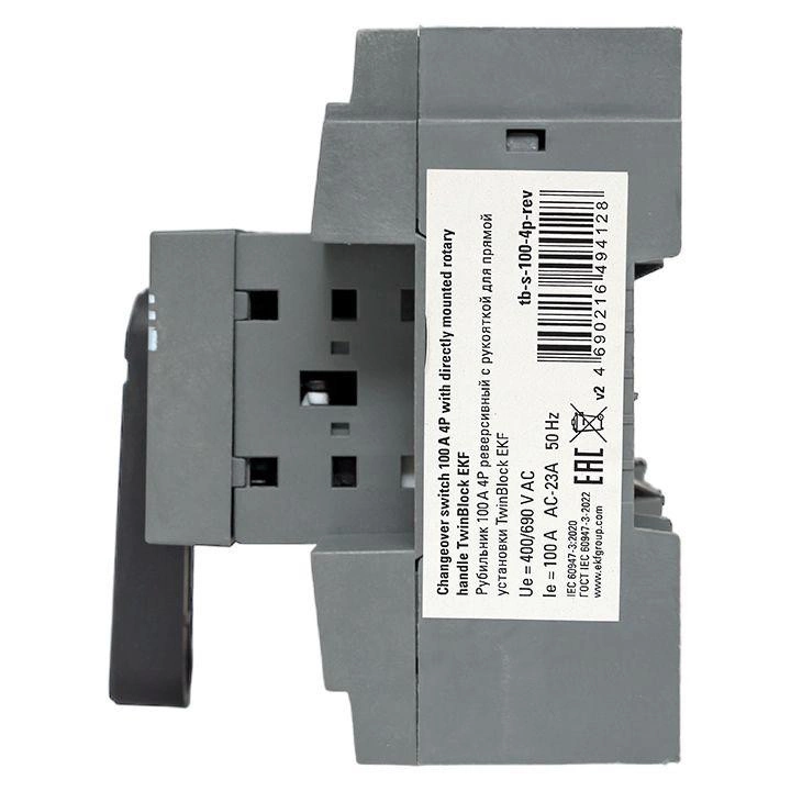 Полное описание: Рубильник 4п 100А реверсивный с рукояткой для прямой установки TwinBlock EKF tb-s-100-4p-rev