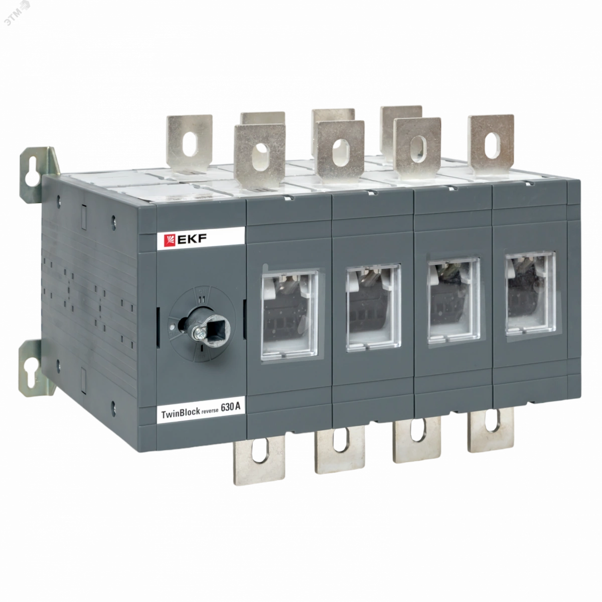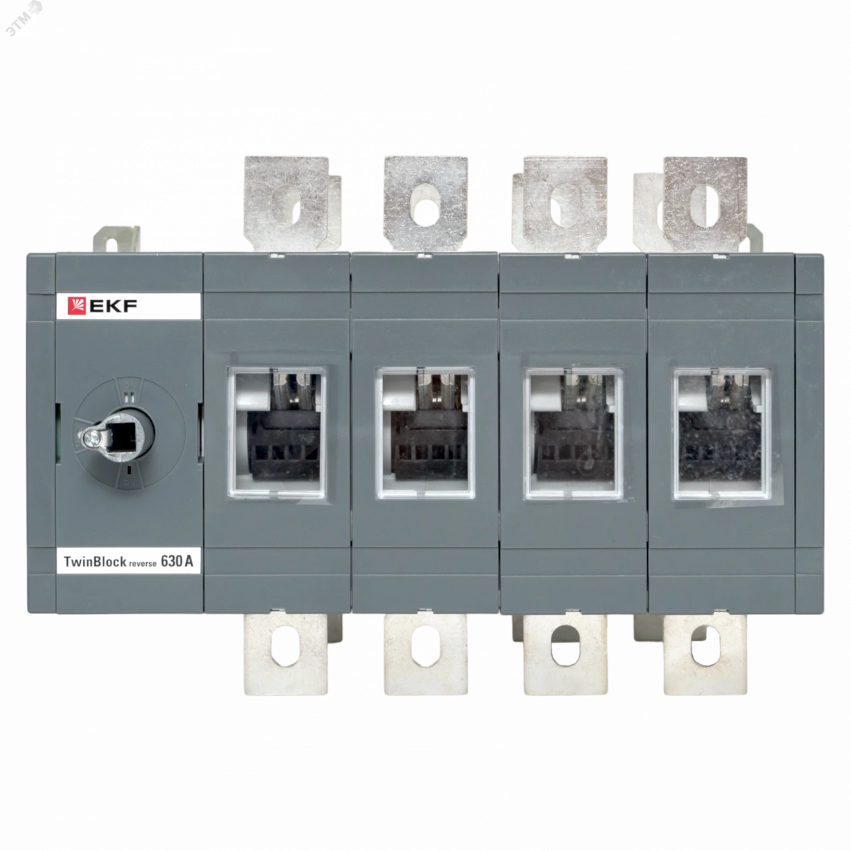 Выключатели-разъединители серии TwinBlock EKF PROxima предназначены для пропускания номинальных токов, включения и отключения электрических цепей номинальным напряжением до 690 В переменного тока частотой 50 и 60 Гц в устройствах распределения электриче ской энергии. TwinBlock имеют следующие исполнения: • с предустановленной рукояткой управления (80 А, 100 А), • без рукоятки управления (рукоятку необходимо приобретать отдельно). • реверсивные (перекидные) рубильники без рукоятки (рукоятку необходимо приобретать отдельно). Для моделей без рукоятки предусмотрены два типа рукояток: • выносная рукоятка для управления через дверь, • рукоятка управления для прямой установки на рубильник.Выключатели-разъединители серии TwinBlock (модели 160-800 А) имеют возможность подключения дополнительного четвертого полюса. Возможна коммутация алюминиевым и медным проводом.