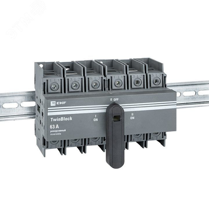 Выключатели-разъединители серии TwinBlock EKF PROxima предназначены для пропускания номинальных токов, включения и отключения электрических цепей номинальным напряжением до 690 В переменного тока частотой 50 и 60 Гц в устройствах распределения электрической энергии. TwinBlock имеют следующие исполнения: 1. С предустановленной рукояткой управления (80 А, 100 А), 2. Без рукоятки управления (рукоятку необходимо приобретать отдельно), 3. Реверсивные (перекидные) рубильники без рукоятки (рукоятку необходимо приобретать отдельно), для моделей без рукоятки предусмотрены два типа рукояток: 3.1. Выносная рукоятка для управления через дверь, 3.2. Рукоятка управления для прямой установки на рубильник. Выключатели-разъединители серии TwinBlock (модели 160-800 А) имеют возможность подключения дополнительного четвертого полюса.
