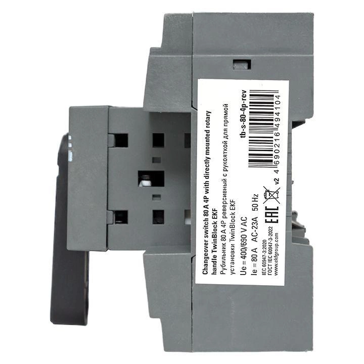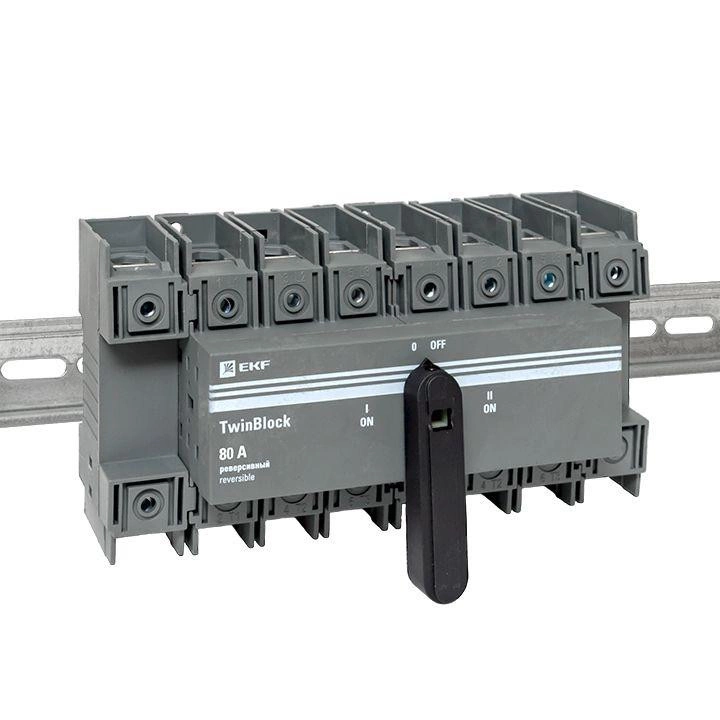 Полное описание: Рубильник 80А 4п реверсивный с рукояткой для прямой установки TwinBlock EKF tb-s-80-4p-rev