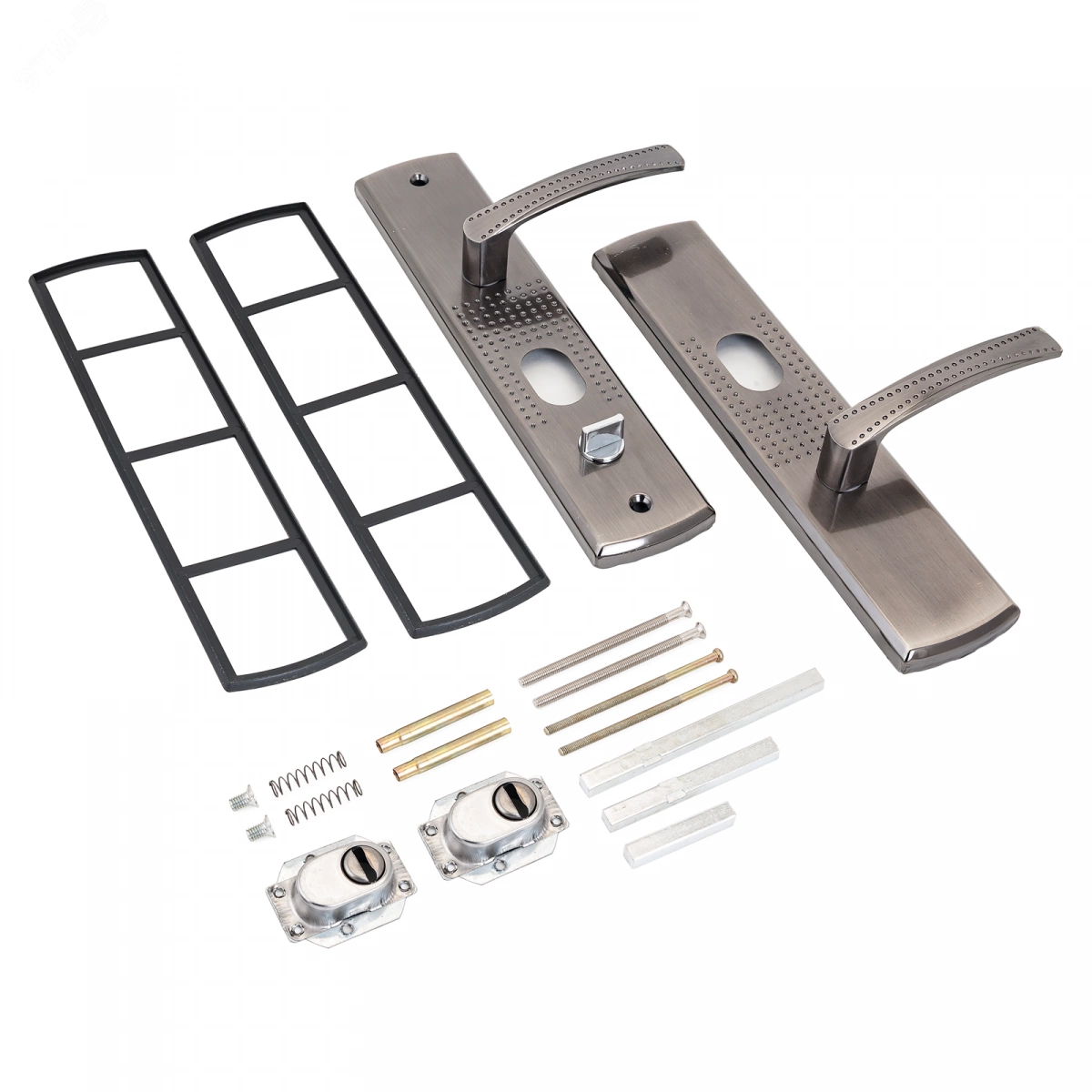 Ручка на планке под цилиндровый механизм. Предназначена для китайских металлических дверей, Подходят для замков автоматического и не автоматического закрывания. Материал планки - сталь, толщиной 1мм, гальваническое покрытие. Межосевое расстояние - 68мм, размеры планки - 60х275мм, длина/высота ручки - 120/19мм соответственно. Цвет ручек и планки - никель. В комплект входят две ручки, винтовые стяжки, пластиковые прокладки и квадратный штырь (8х8мм) 110мм, комплекты стержней для автоматических и не автоматических замков.