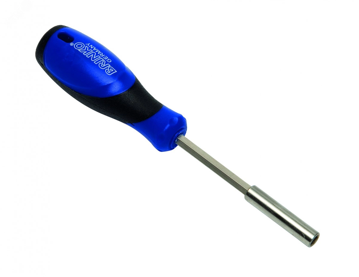 Рукоятка, для сменных бит, 100мм хром-ванадиевая сталь матовое хромированное жало, длиной 100мм с эргономичной 8-гранной 2-х компонентной рукояткой с отверстием с магнитом и откидным кольцом подходит ко всем битовым насадкам 1/4''
