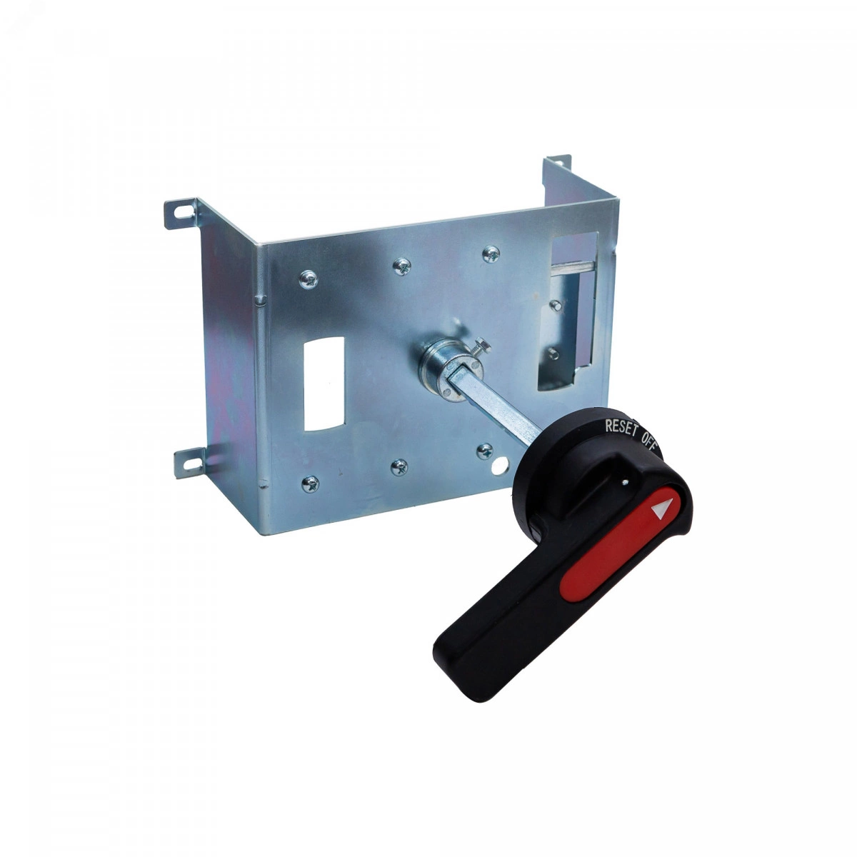 Рукоятка выносная позволяет управлять автоматическим выключателем, установленным в глубине щита. Управление осуществляется с передней панели щита. Рукоятки выносные для автоматического выключателя PRO.KVANT поставляются в двух вариантах — с центральным приводным механизмом и механизмом типа эксцентрик. Рукоятка имеет индикацию состояния выключателя, возможность блокировки автоматического выключателя в заданном положении.