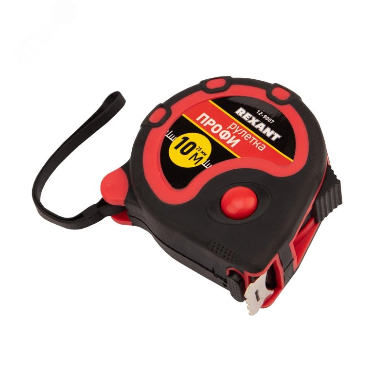 Измерительная рулетка REXANT 'Профи' необходима при проведении измерительных работ в строительстве, хозяйстве, ландшафтных и геодезических исследованиях. Эргономичный прорезиненный корпус выполнен из ударопрочного пластика, не скользит в руках. Для удобства использования рулетки предусмотрены кнопки стопора и фиксации тормоза. Полотно обладает удобным зацепом с отверстием посередине. На корпусе расположена клипса-зажим для фиксации рулетки на ремне, кармане или поясной сумке. Ремешок позволяет надевать инструмент на запястье, чтобы освободить руки для работы.