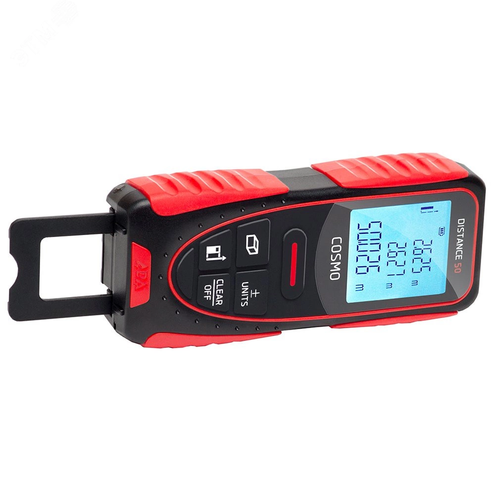 COSMO 50 — это профессиональный лазерный дальномер, особенностью которого является простота и удобство в использовании. Даже при ярком солнце измеряет расстояние до 50 метров с высокой точностью. Максимальная погрешность измерения составляет всего 1,5 миллиметра. Эргономичный дизайн, защитные протекторные накладки расположены в верхней и нижней части прибора. Дальномер удобно лежит в руке. При ударах они защитят корпус от повреждений. Мембранные кнопки управления не боятся пыли и влаги. Дальномер ADA COSMO 50 выполняет быстрое сложение и вычитание, а так же производит автоматическое вычисление площади и объема. Для возможности расчета недоступных для прямого измерения отрезков модель оснащена функцией вычисления расстояния между двумя точками по геометрическим формулам Пифагора. Откидная скоба поможет произвести точные измерения из углов и щелей.