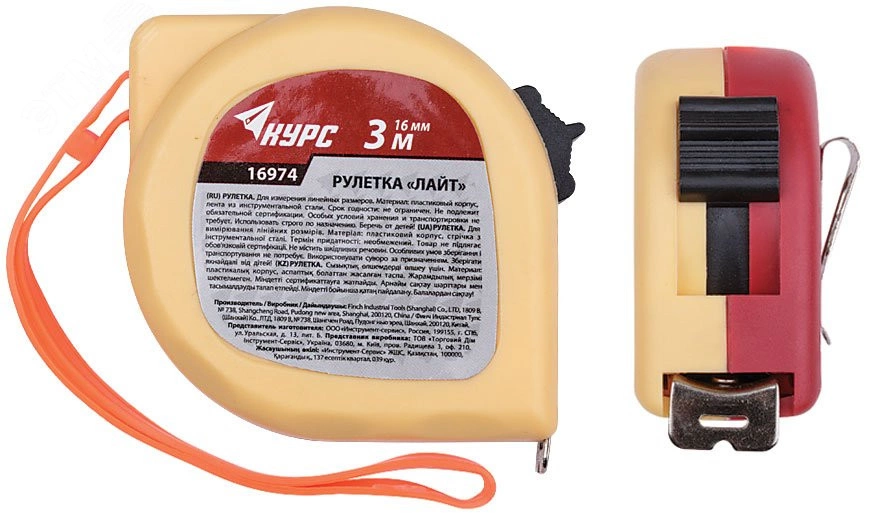 Рулетка пластиковая 2-х цветная ''Лайт'' 3 м x 16 мм