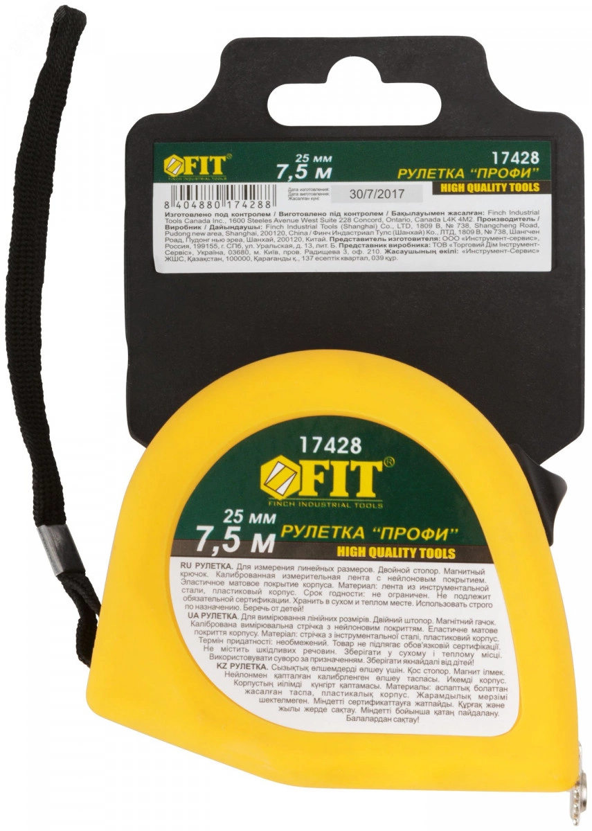 Рулетка Профи, калибр.лента, нейл.покр., магн.крючок, эласт.корпус черн-желт., двойн.стопор 7.5 м х 25 мм