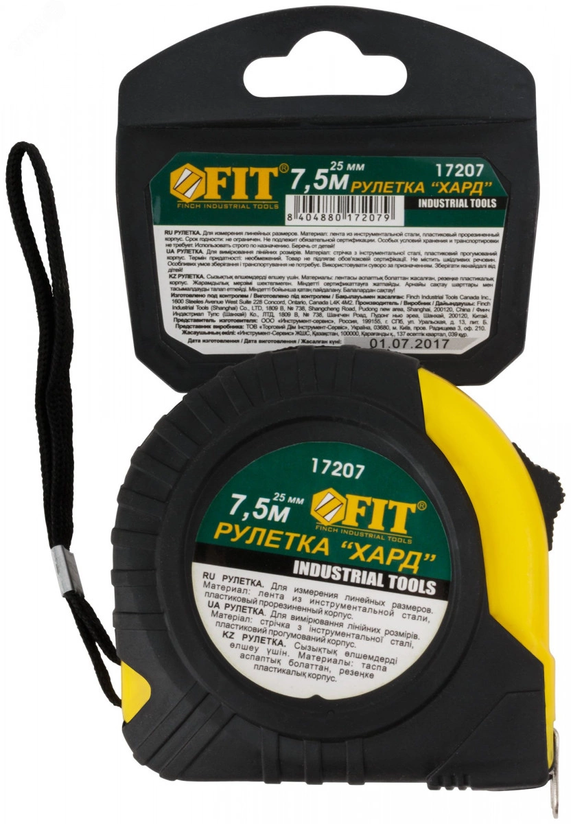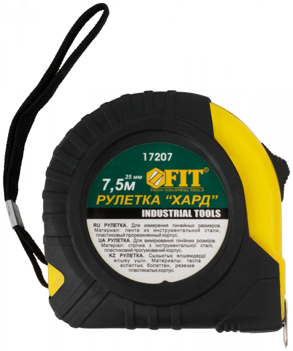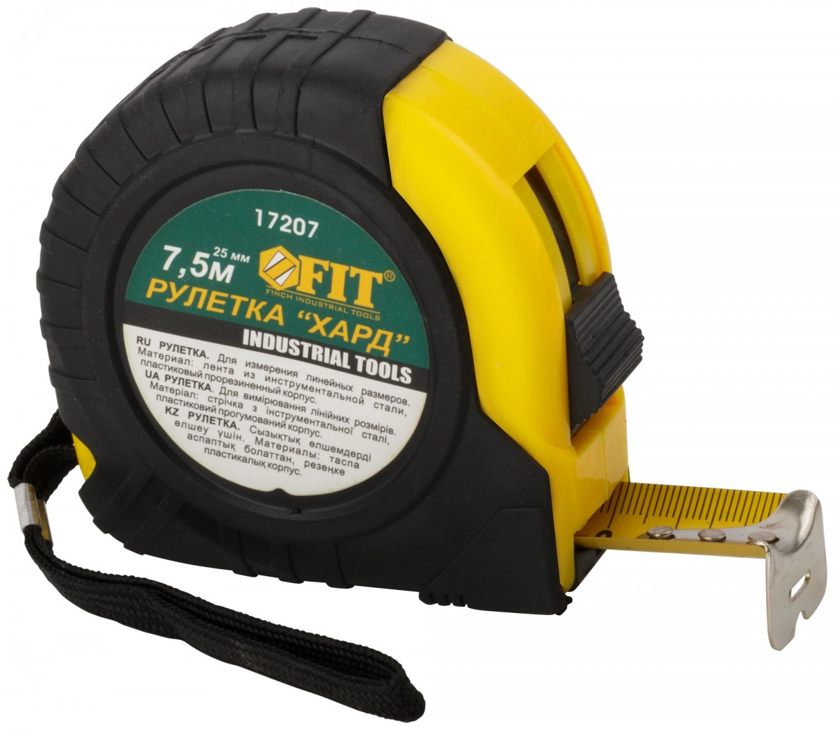 Рулетка ''Хард'' FIT IT предназначена для измерений линейных размеров. Корпус рулетки изготовлен из ударопрочного ABS-пластика, устойчивого к механическим воздействиям. Резиновые накладки на корпусе предотвращают повреждения инструмента при падении или ударе. Полимерное покрытие измерительной ленты защищает шкалу от истирания. Рулетку можно крепить на ремне с помощью металлической клипсы. Тканевый ремешок позволяет носить рулетку на руке или хранить в подвешенном положении.
