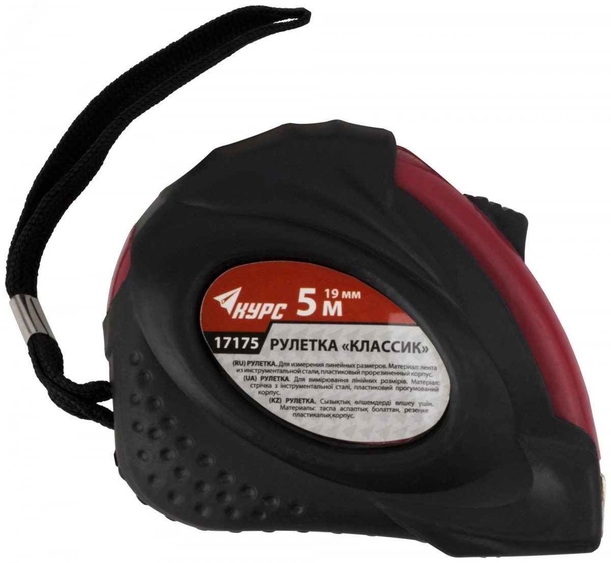 Рулетка ''Классик'' КУРС с двойным стопором предназначена для измерений линейных размеров. Корпус рулетки изготовлен из ударопрочного ABS-пластика, устойчивого к механическим воздействиям. Резиновые накладки на корпусе предотвращают повреждения инструмента при падении или ударе. Полимерное покрытие измерительной ленты защищает шкалу от истирания. Рулетку можно крепить на ремне с помощью металлической клипсы. Тканевый ремешок позволяет носить рулетку на руке или хранить в подвешенном положении.