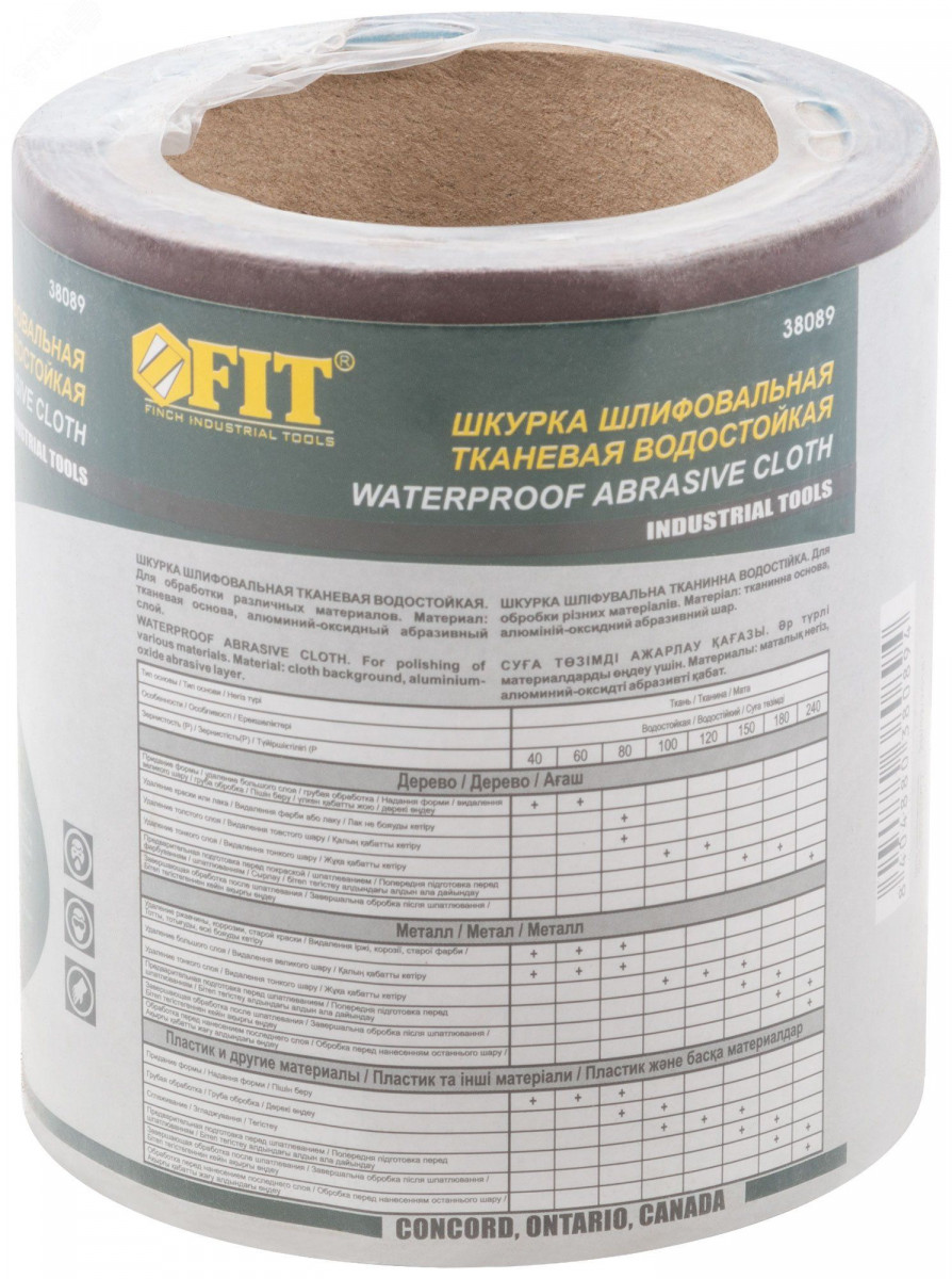 Профи. На тканевой основе. В рулонах 115 мм х 5 м. Водостойкая. Для работы по дереву, металлу, пластику, бетону и других материалах. Материал - алюминий-оксидный абразивный слой.