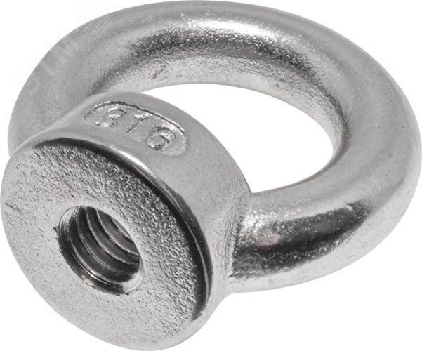 Рым-гайка с проушиной предназначены для закрепления в теле конструкции для дальнейшего подъема грузозахватными приспособлениями. Плоскость кольца перпендикулярна оси направления резьбы, что позволяет затягивать рым-гайку при помощи любого вставленного в кольцо рычага. Затем за кольцо (петлю) рыма можно закрепить крюк и поднять/переместить груз. Применяется во всех отраслях промышленности. Рекомендуется применять для подъема вдоль оси болта.