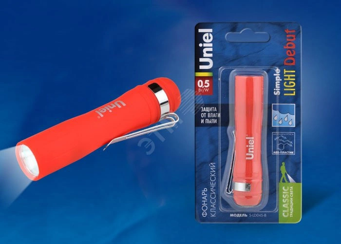Полное описание: S-LD045-B Red Фонарь Uniel серии Стандарт «Simple Light — Debut», пластиковый корпус, 0,5 Watt LED, упаковка — блистер, 1хАА н/к, цвет красный