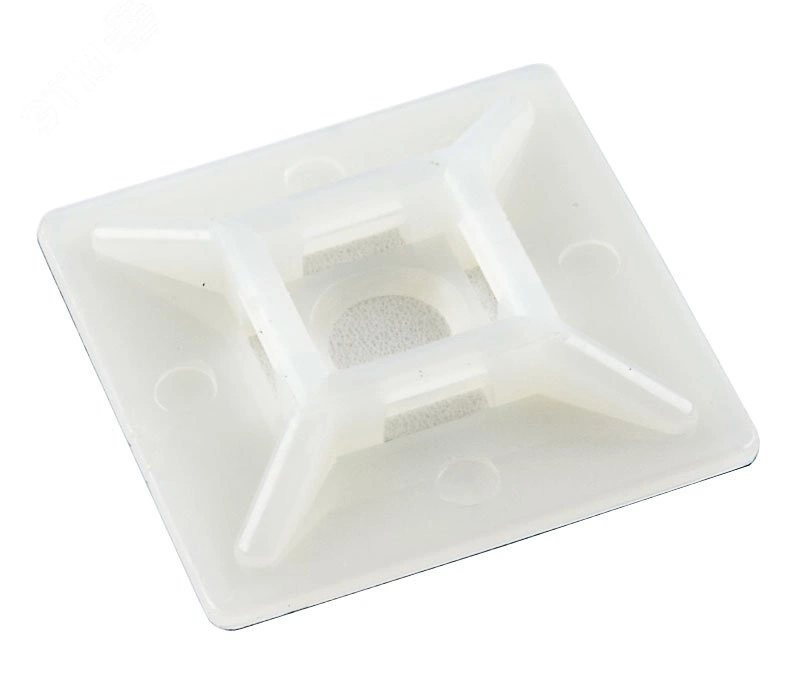 Площадка с клеевой основой для стяжки и возможностью дополнительного крепления под винт. Изготовлены из полиамида 6.6. Хорошая стойкость к маслам, смазкам, производным маслам, хлористым растворителям, ограниченная устойчивость к кислотам.