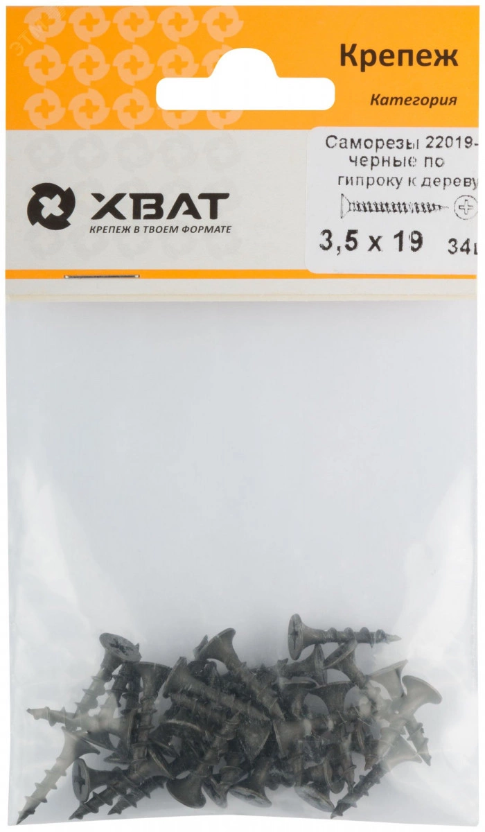 Саморез гипсокартон/дерево 3,5х19 черный (34шт)