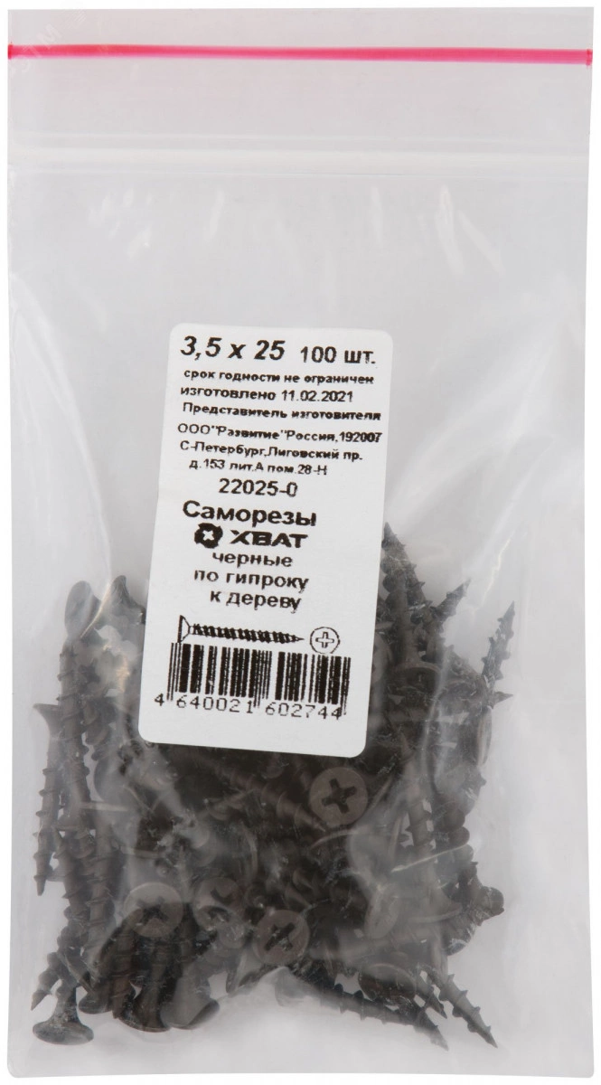 Саморез гипсокартон/дерево 3,5х25 черный (100шт)